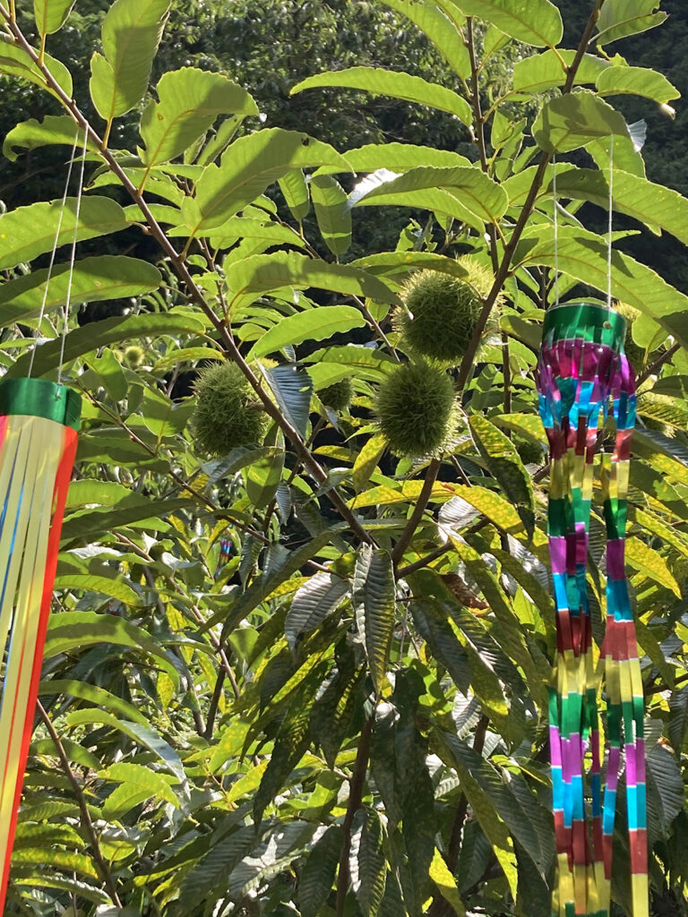 今年初めて実をつけてくれた栗の木をちょっと飾ってみました。