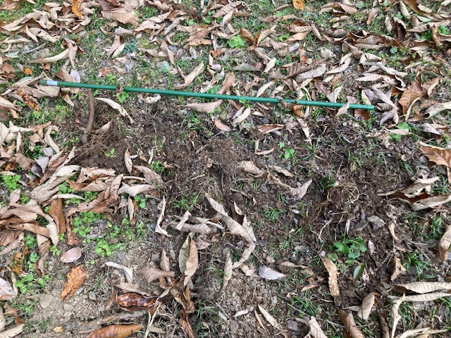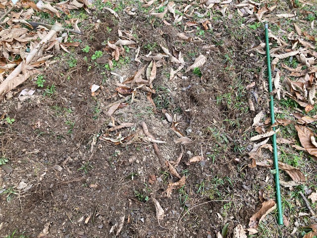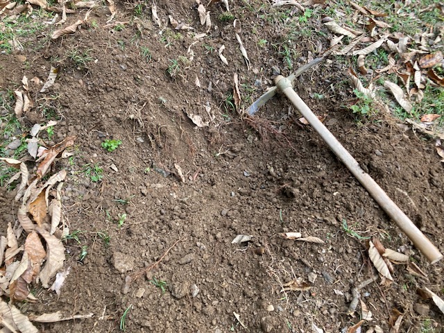 私の栗山は山を切り開いた斜面なので手掘りになり場所によると固い箇所もありますのでまずはツルハシで縦横1メール枠で少し掘ってみます。